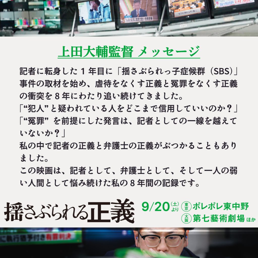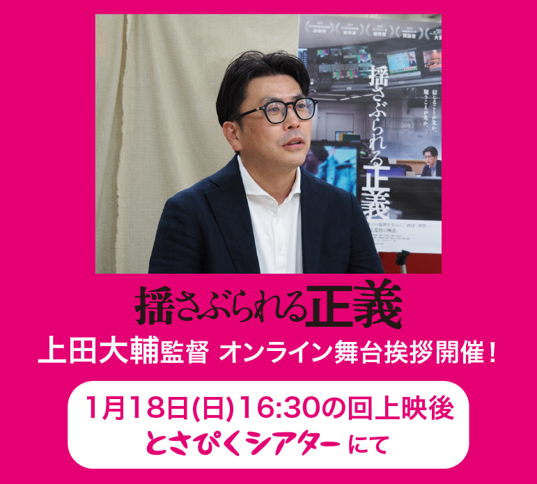「揺さぶられる正義」上田大輔監督オンライン舞台挨拶 開催! 2026/1/18(日)