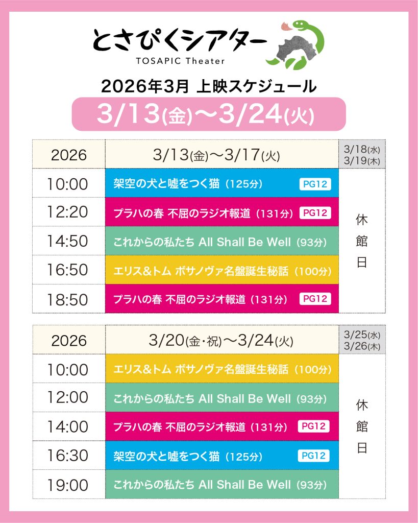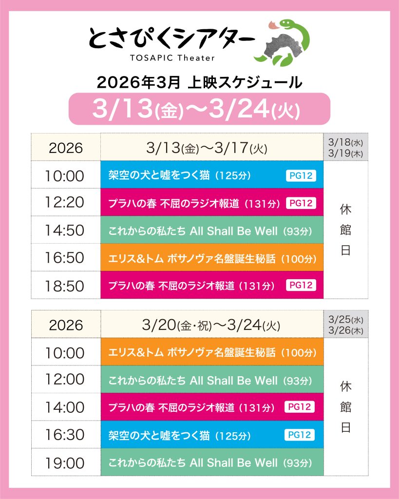 とさぴくシアター【2026/3/13(金)~3/24(火) 上映スケジュール】