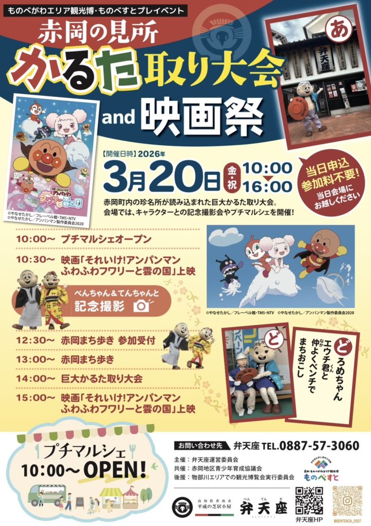 会場では、べんちゃん&てんちゃんとの記念撮影会やプチマルシェ、赤岡まち歩きなど楽しい企画が盛りだくさん!